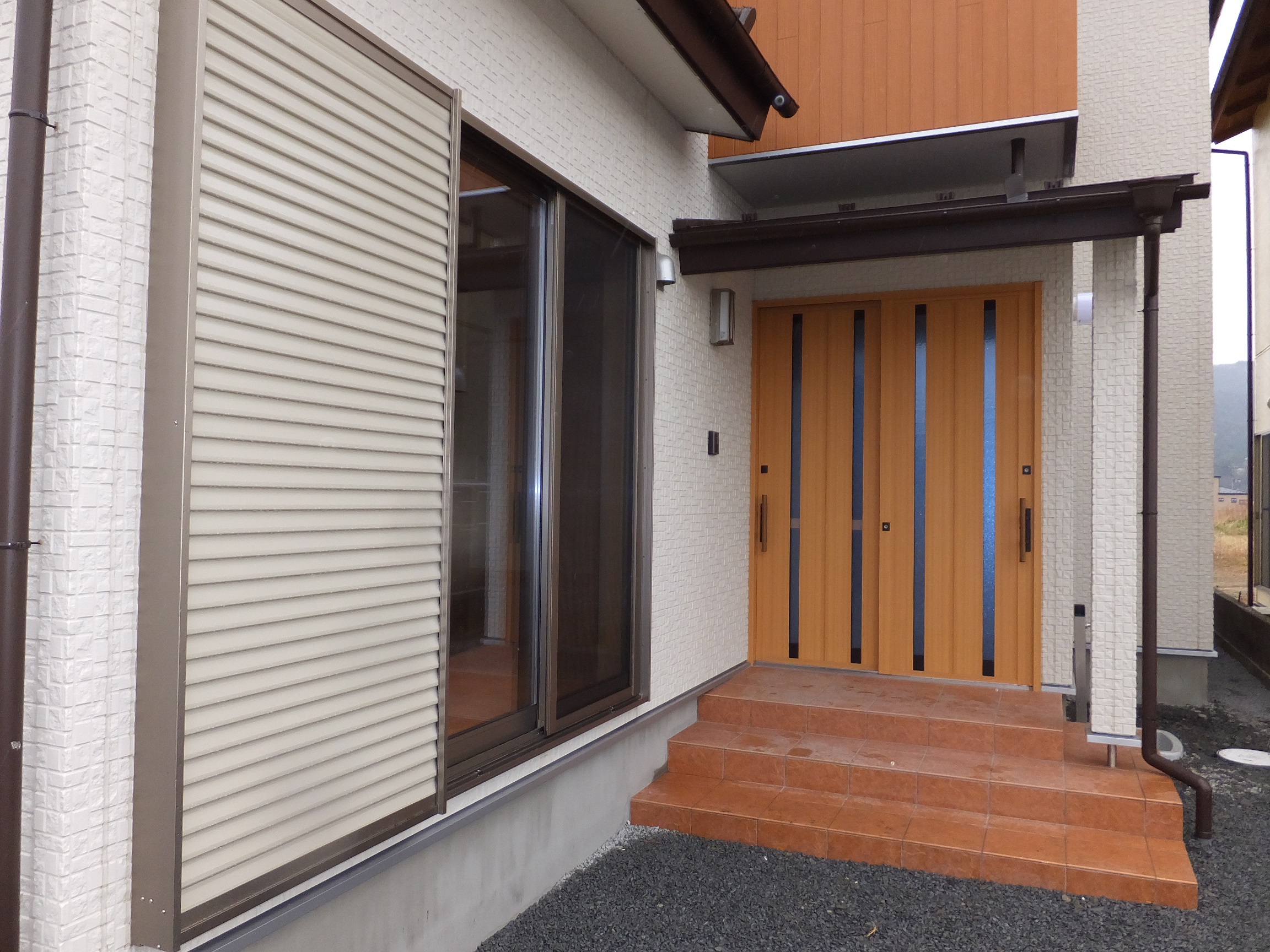 将来太陽光発電の為の屋根形状と2Fロフトを配置し玄関は風除室を設置している。