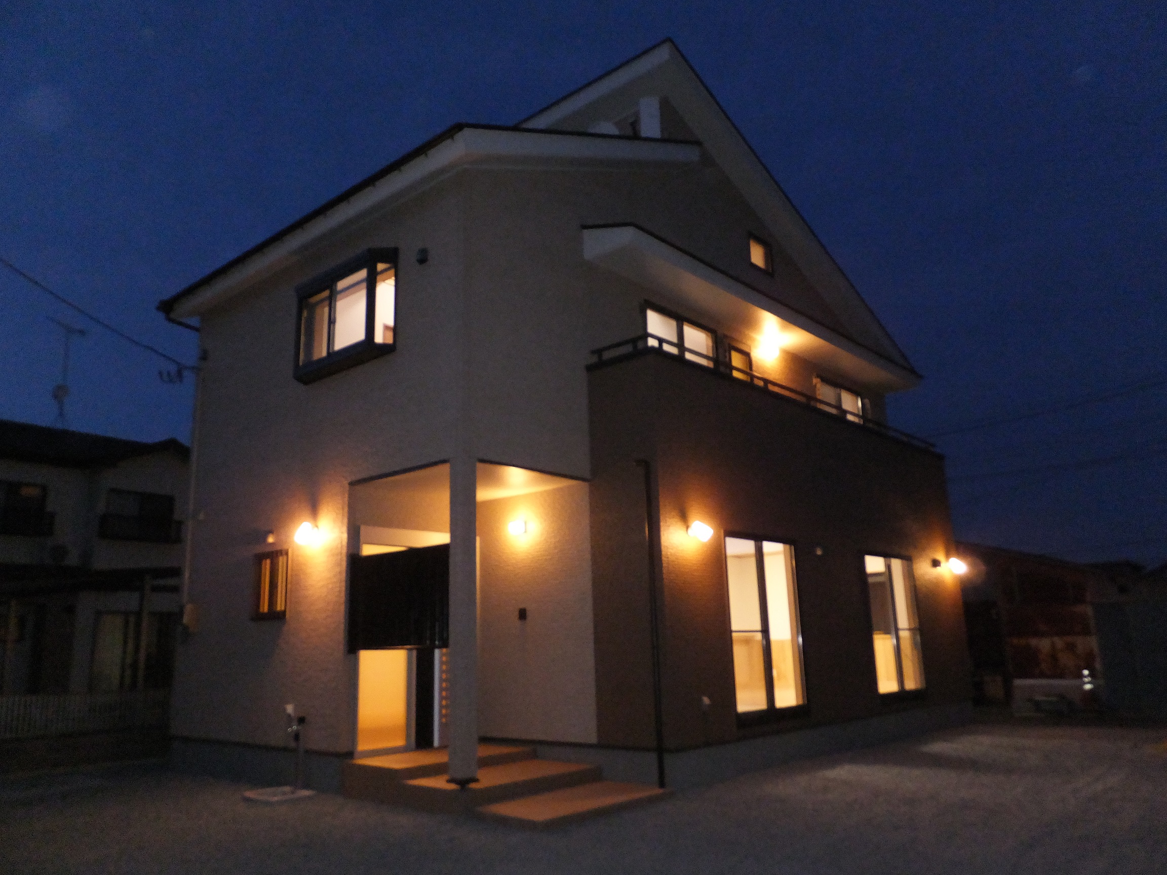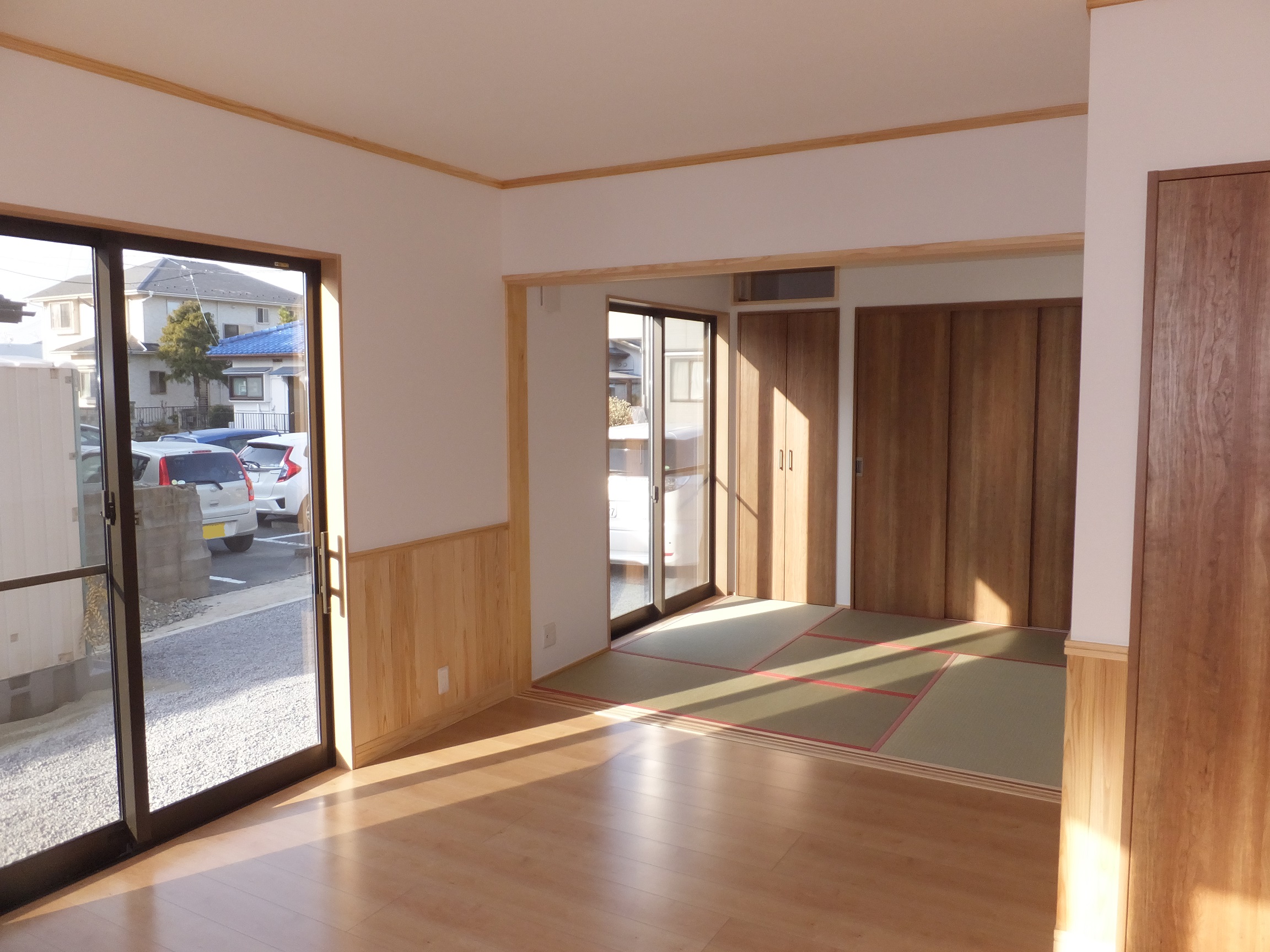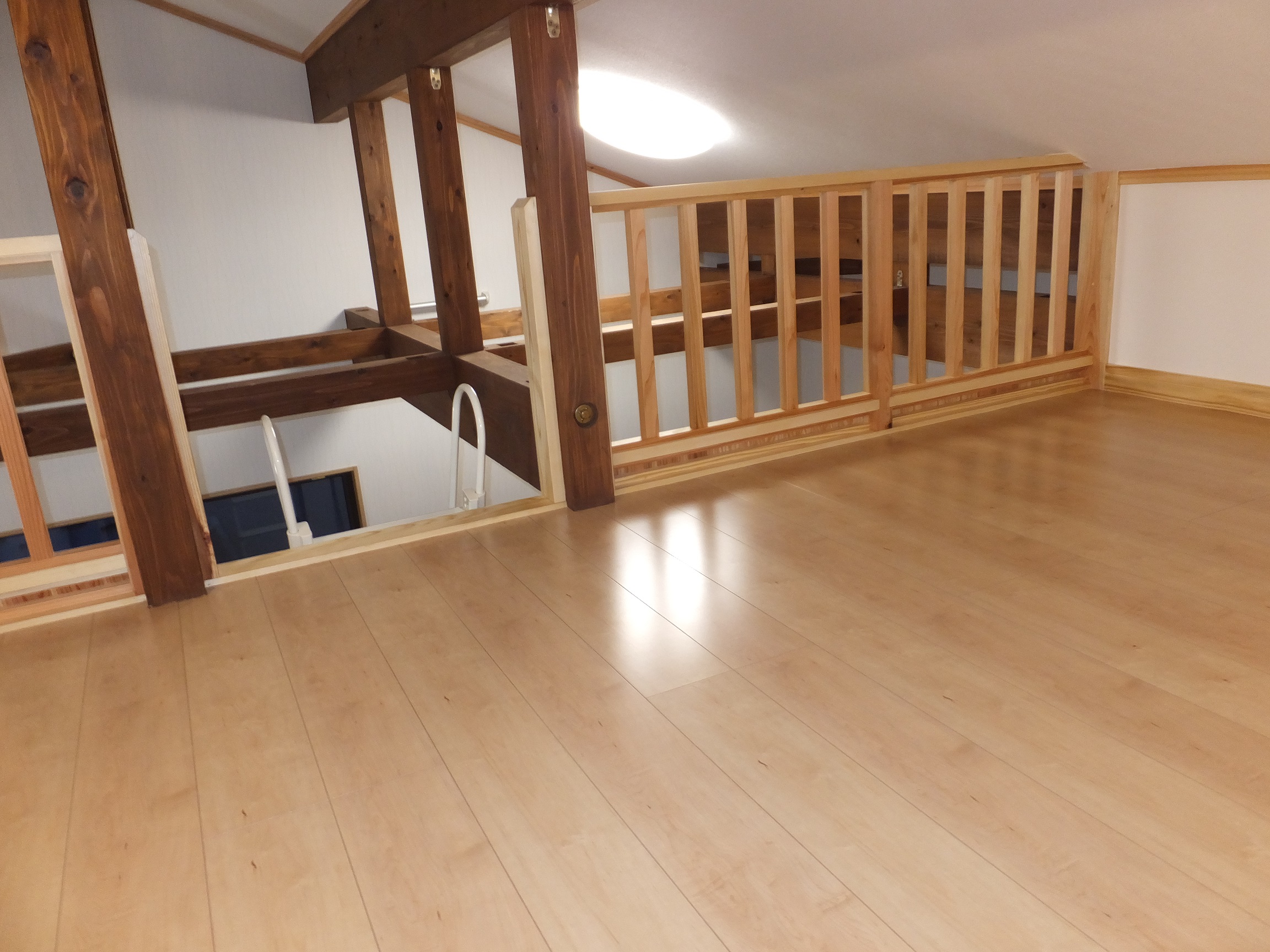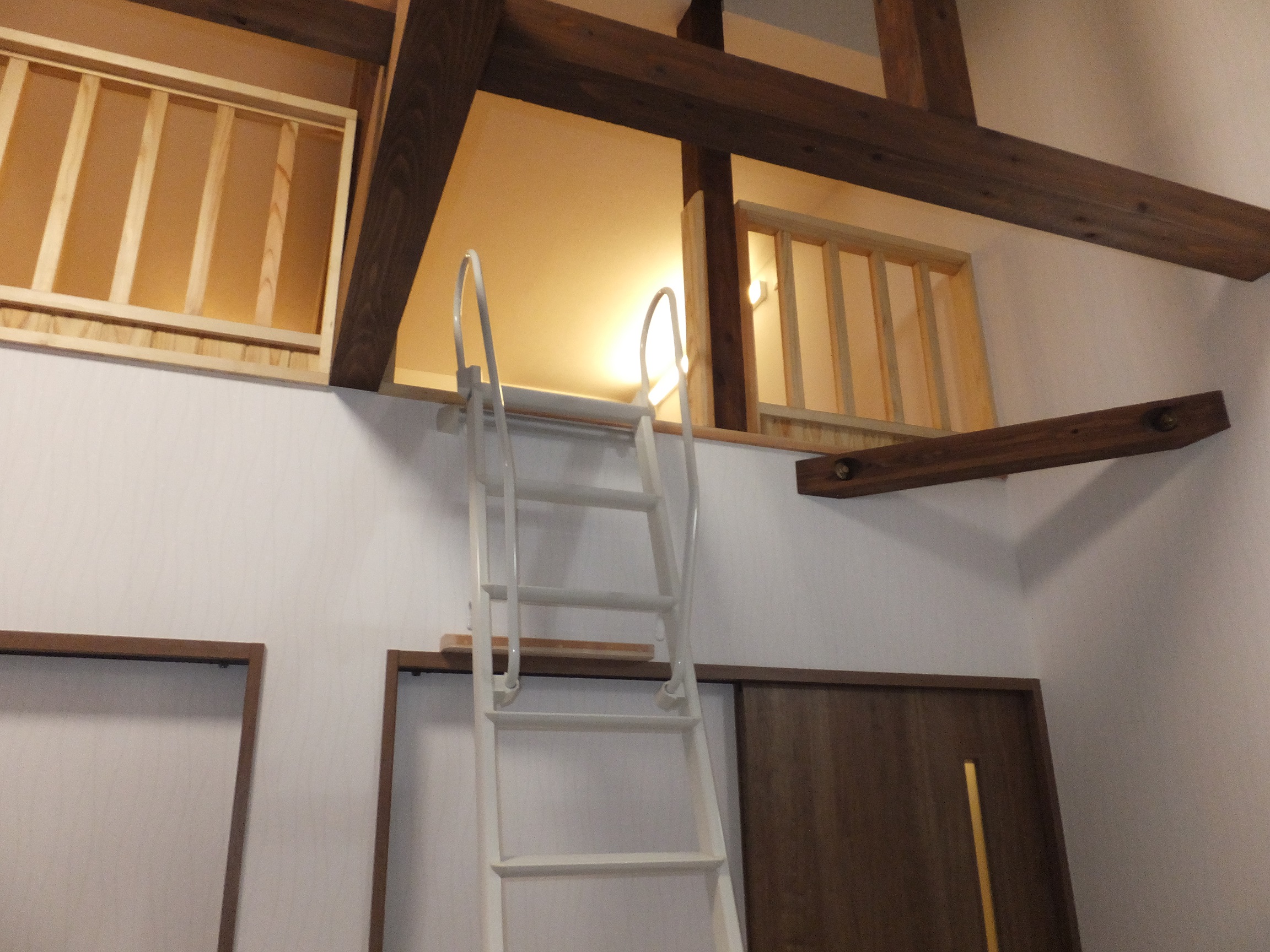 2F3室にロフトを配置したオリジナルな空間となりました。1Fはリビングダイニングと和室が一つの大きな部屋になります。浴室のブラインドインサッシは